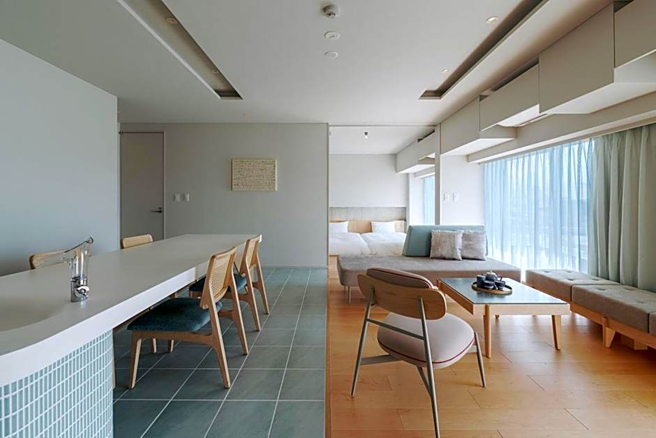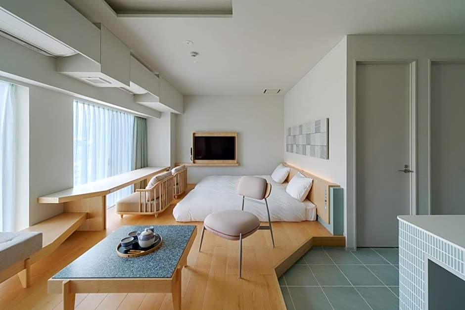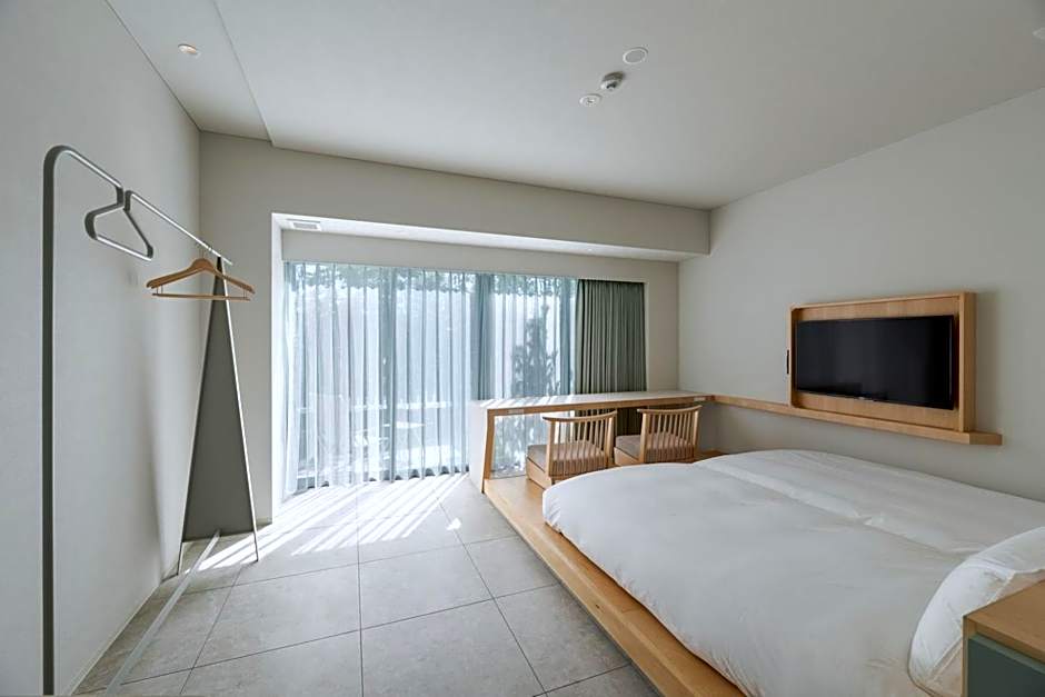 This twin room features a private open-air bath. The spacious twin room features air conditioning, a tea and coffee maker, as well as a private bathroom boasting a bath and a shower. Rooms on the upper floors are reachable by elevator.